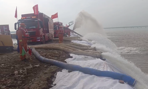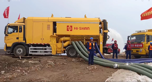 2022年5月多功能挖掘抽吸車參與荊州應(yīng)急排澇演練。