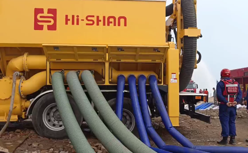 2022年5月多功能挖掘抽吸車參與荊州應(yīng)急排澇演練