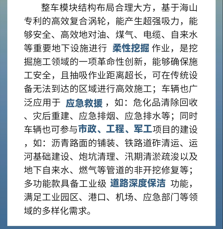 ??2016年福州尼博特洪災(zāi)救援:海山多功能挖掘抽吸車靈活應(yīng)對窄巷、院墻、溝渠等工況,可跨溝越障,高效清理災(zāi)后現(xiàn)場,同時(shí)兼顧路面清潔。