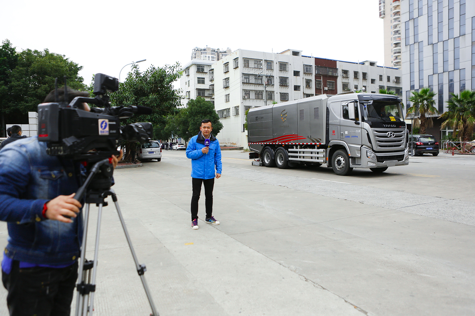 海山機械研制國內(nèi)首臺污染清除車吸引東南衛(wèi)視采訪