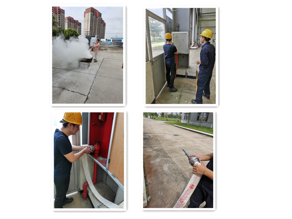 1、2021年7月26日上午9:00分左右,公司廠內(nèi)制造車間出現(xiàn)火情,現(xiàn)場(chǎng)應(yīng)急人員立即組織消防逃生及滅火,并立即報(bào)告應(yīng)急辦公室,由應(yīng)急辦公室立即向應(yīng)急指揮部報(bào)告。應(yīng)急指揮部根據(jù)初期火情控制情況及預(yù)警級(jí)別,確認(rèn)是否啟動(dòng)應(yīng)急響應(yīng)。若啟動(dòng)應(yīng)急響應(yīng),相關(guān)部門配合做好應(yīng)急響應(yīng)工作,待達(dá)到應(yīng)急終止條件后,終止應(yīng)急響應(yīng)。最后對(duì)現(xiàn)場(chǎng)進(jìn)行洗消、并進(jìn)行工作總結(jié)與評(píng)估。消防逃生及滅火演練圖片如下: