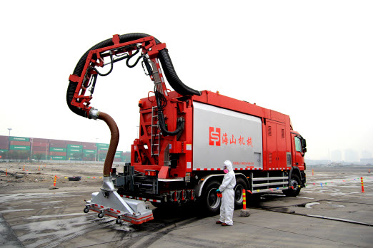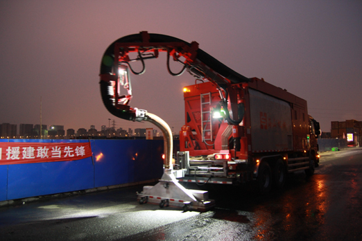 This operation is a reform to the traditional construction method of joint operations by road sweeper, sprinkler, and other cleaning equipments. One single suction excavator finished all tasks, with its performance confirming to the environment-protection requirements. Compared to traditional operation methods, the suction excavator enhances efficiency by five times, meanwhile leaving a clean road.
