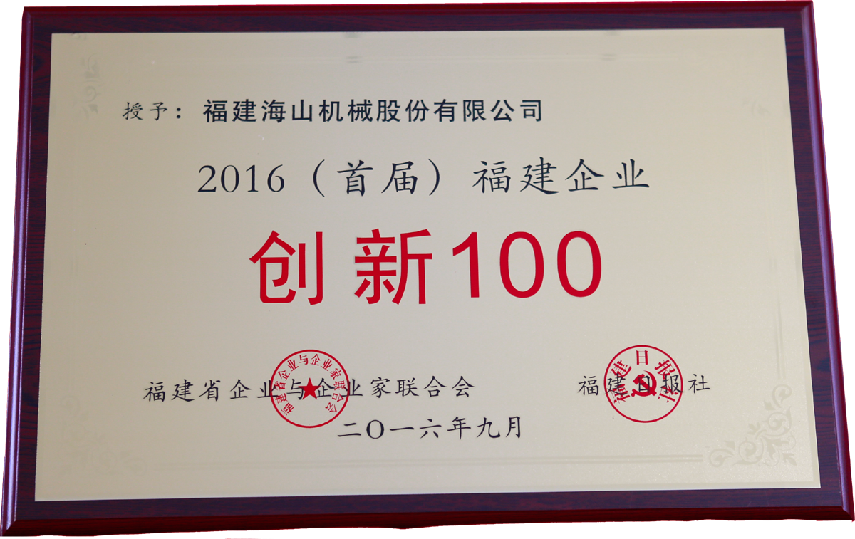 On Sep 21,the 2016 China Pingtan ? Entrepreneur and Scientists Innovation Forum was held in Pingtan, the Forum issued a list of top 100 innovative enterprises (the first ever)of Fujian, and delivered plaques for cross-strait industrial innovation alliance. Hishan Machinery was on the list. Fujian Province, for the first time assembled entrepreneurs, scientists, financiers as the main reviewers, together with media, think tanks, and economic associations co-sponsored the annual innovation evaluation and innovative service activities. The selection standard was centered on the National Innovation Outlook